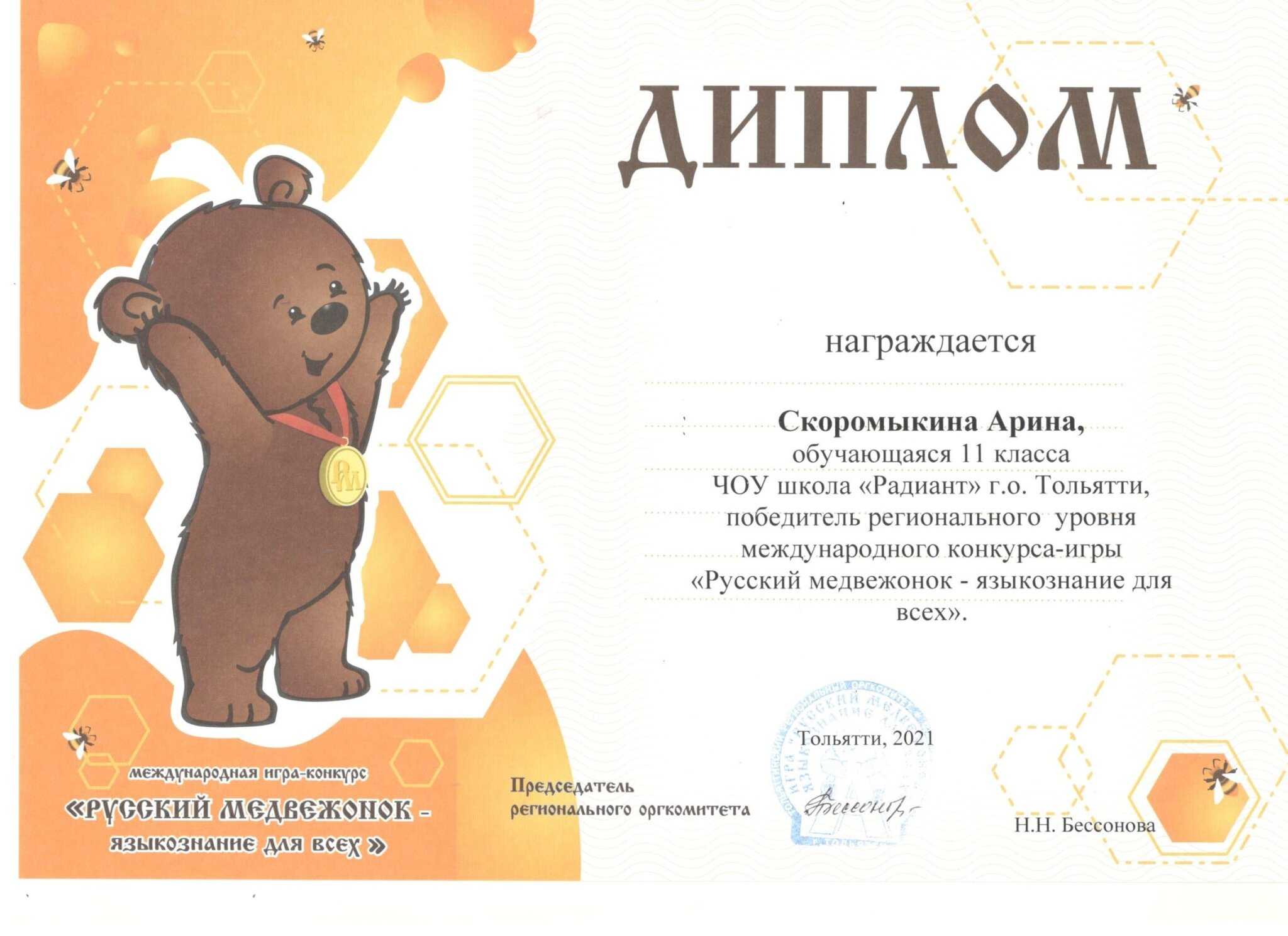 диплом русского медвежонка |